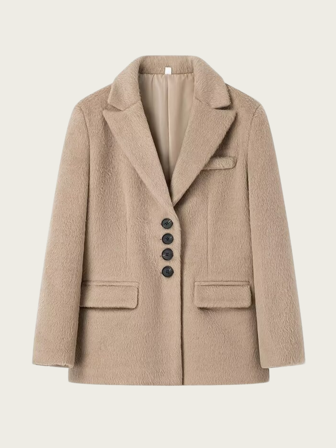 Deze blazer voegt een geraffineerde en gedurfde touch toe met zijn afwerking met pileffect, waardoor een klassiek model een statement wordt. Het gestructureerde silhouet met gedefinieerde schouders accentueert het figuur en biedt een elegante aanwezigheid voor elke gelegenheid.