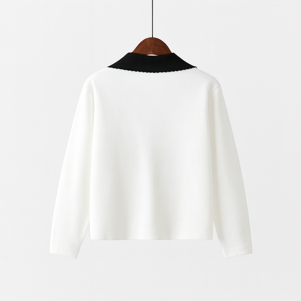Geribd dames-T-shirt met lange mouwen en decoratieve knopen - Delorean