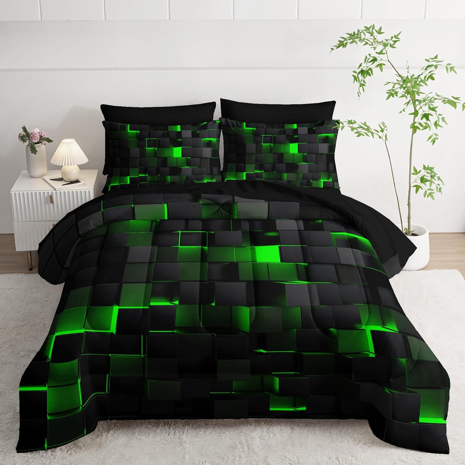 Geef je slaapkamer een gedurfd, modern tintje met deze stijlvolle 3-delige dekbedovertrekset. Met een neon rasterontwerp en zacht aanvoelende stof, is het zowel voor visuele impact als voor een ontspannen nachtrust.