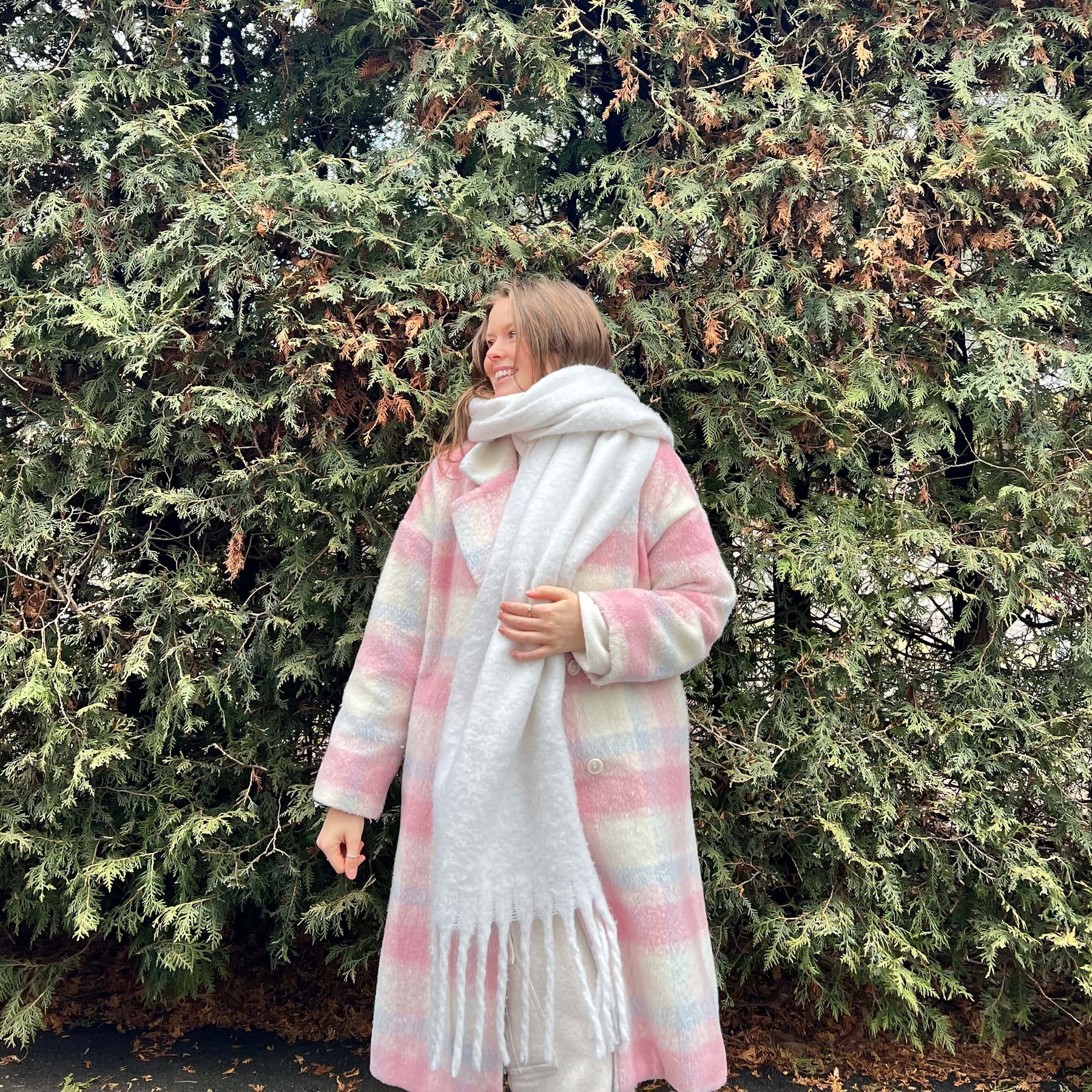 - 2 opties beschikbaar: kies de zoete winterjas alleen of kies voor de complete set met de jas en een mooie witte sjaal. De sjaal is warm, donzig en van hoge kwaliteit.