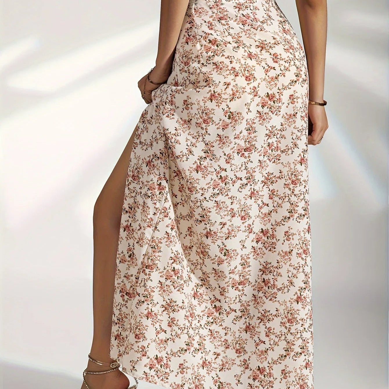 Fris, vrouwelijk en met een natuurlijke charme: deze lange rok met bloemenprint is een ode aan de zomer. De hoge taille maakt het silhouet slanker, terwijl de split aan de zijkant beweging en een vleugje casual raffinement toevoegt.