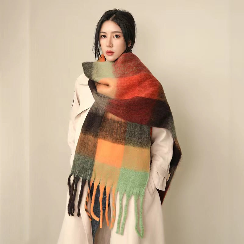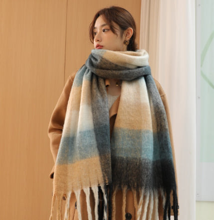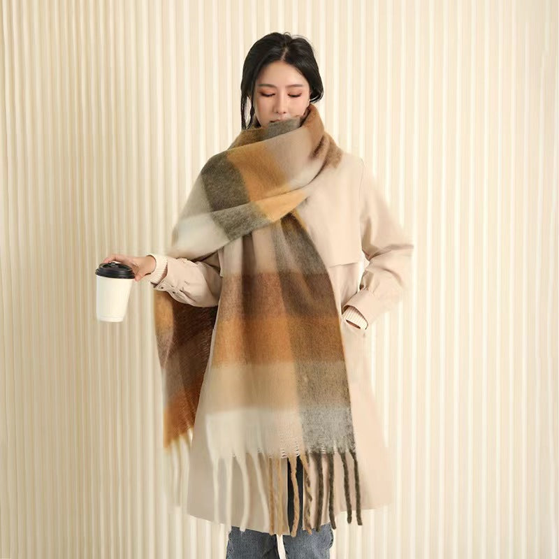 De pluche afwerking zorgt voor een zacht volume en een gelijkmatige textuur die bewegingen begeleidt zonder stijf te worden. De uiteinden met franjes behouden een stabiele proportie en versterken het ontspannen karakter van het item, dat bedoeld is voor veelvuldig gebruik in stedelijke en seizoensstijlen.