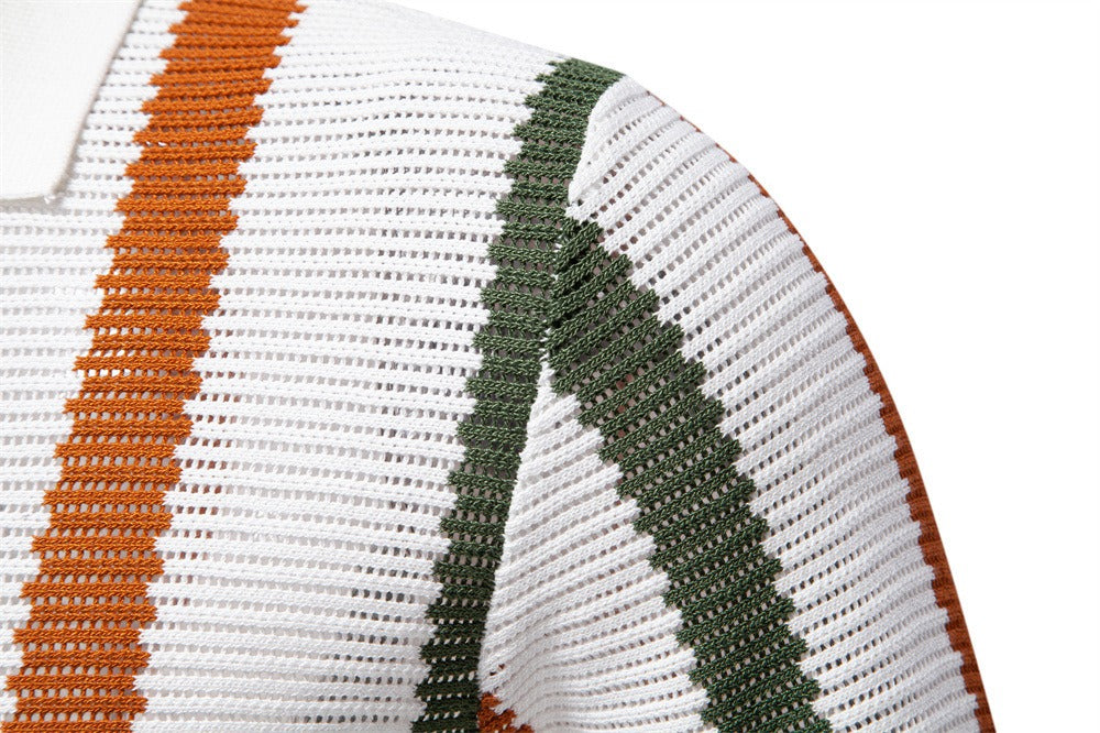 Dit poloshirt met korte mouwen heeft een retro-uitstraling en een eigentijds ontwerp. Het heeft een geribde gebreide constructie en een contrasterend verticaal streeppatroon. De klassieke kraag zonder knopen versterkt de ontspannen, verfijnde stijl, ideaal voor wie op zoek is naar karakter en veelzijdigheid.