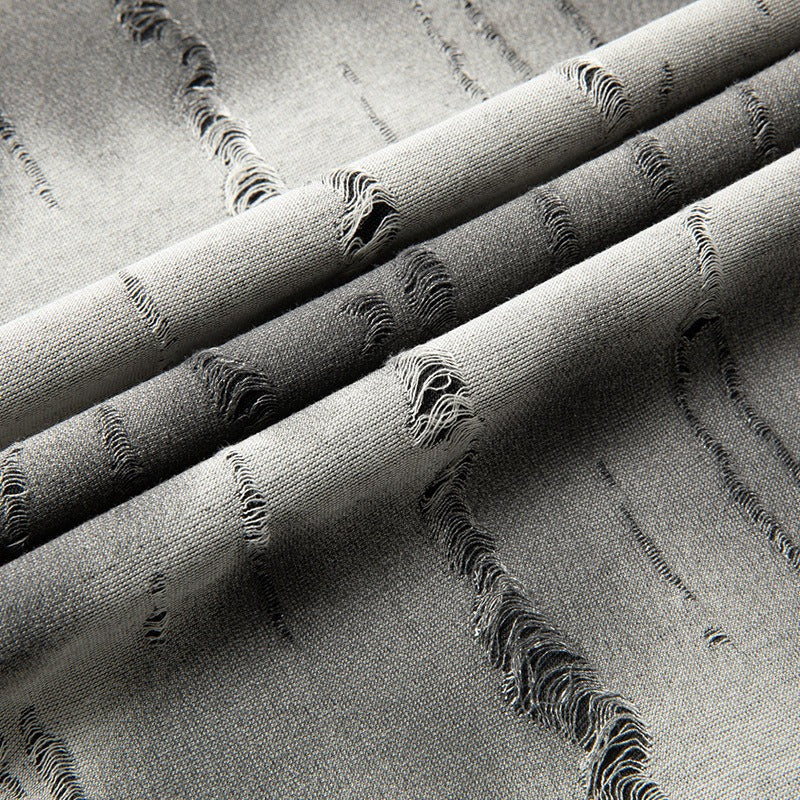 Dit T-shirt heeft een modern ontwerp met een versleten visueel effect dat verticaal gebroken texturen nabootst, wat een kenmerkende stedelijke stijl creëert. De neutrale en taupe basiskleuren zorgen voor veelzijdigheid, ideaal voor wie wil opvallen zonder afbreuk te doen aan een ingetogen stijl.